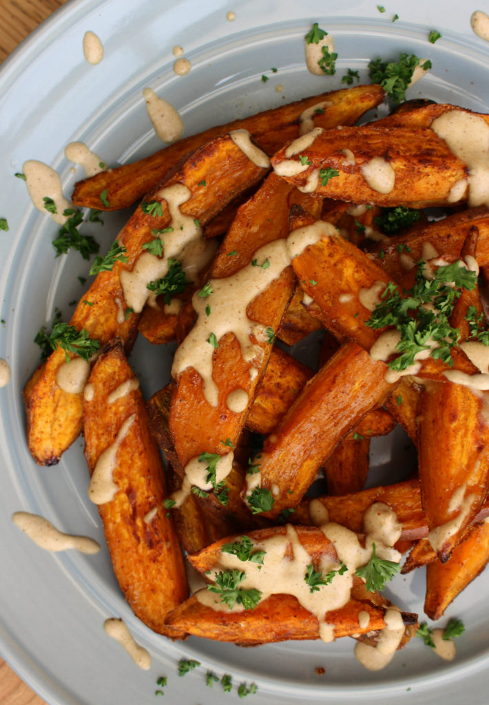 Sweet Potato Wedges with Tahini Drizzle